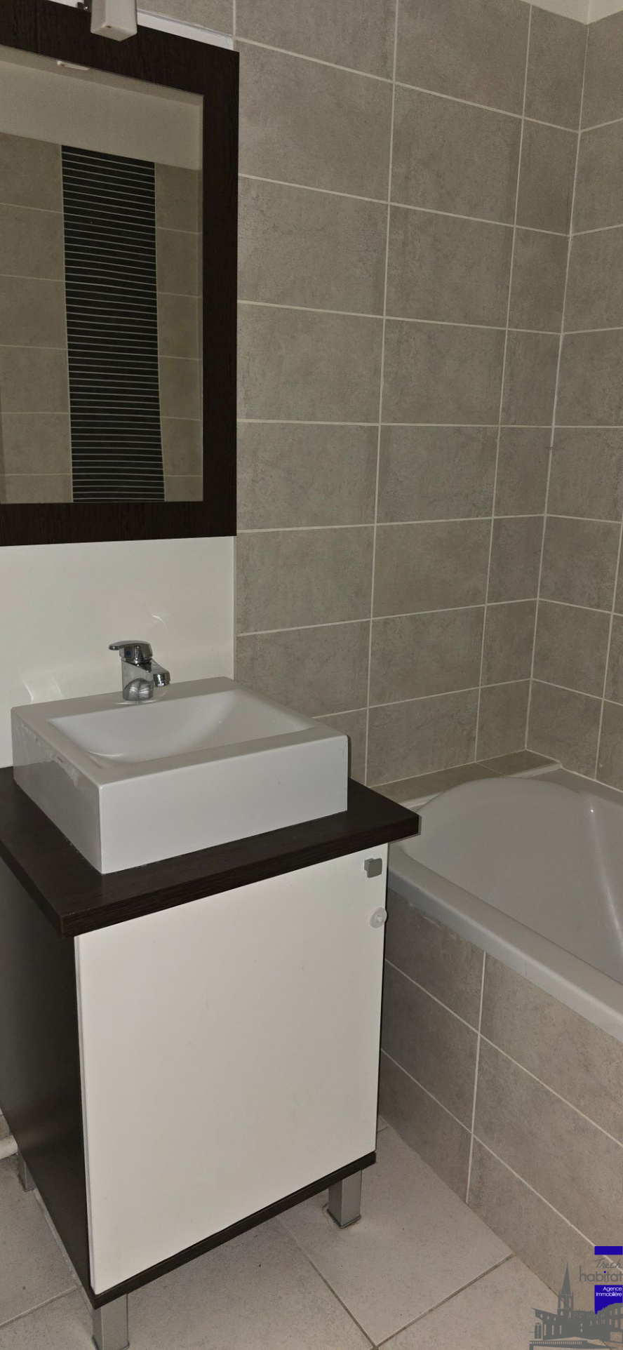 baignoire, meuble vasque et miroir |