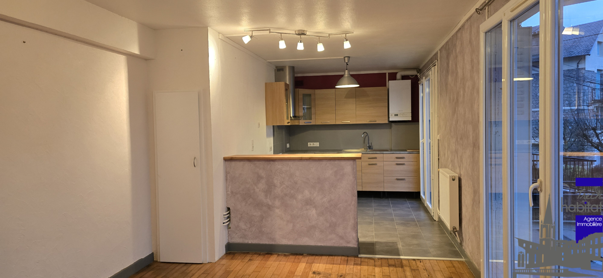 Trés bel appartement, lumineux et fonctionnel, situé au premier étage d'une petite copropriété.Grande pièce de vie avec espace cuisine aménagé et équipé d'une cuisinière gaz avec four et hôte, accès immédiat à la grande terrasse privative de 50 m2.Une chambre, un dressing aménagé, une salle d'eau avec fenêtre, un wc avec fenêtre.Chauffage individuel gaz de ville.Compteur d'eau individuel.Idéalement situé, à 2 pas du lycée Edmond Perrier, du quartier du Trech , de l'hopital, de la préfecture.Stationnement gratuit dans la rue.Libre.