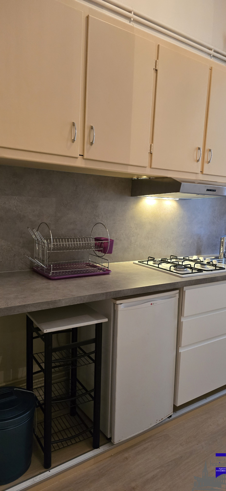 Dans un bel immeuble de caractère, appartement de type T1 de 28 m2 situé au premier étage. Pièce de vie avec placard,cuisine séparée aménagée de meubles hauts et bas, frigo top, hôte et plaque gaz.Salle d'eau avec WC, cabine de douche, meuble vasque avec rangement et miroir.Chauffage central individuel gaz de ville ( chaudière neuve) menuiseries double vitrage ( neuves).Appartement coquet, facile à vivre, idéalement situé , toutes commodités sur place.Libre.